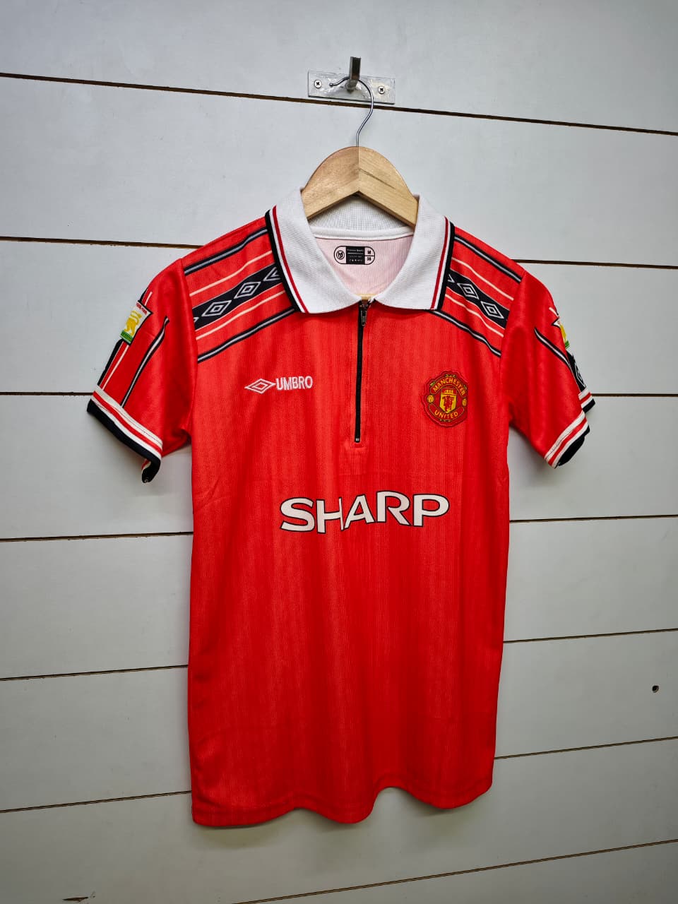 MANCHESTER UNITED RETRO 1998-99 HOME BECKHAM with COLLAR (EMBROIDERY LOGOS)